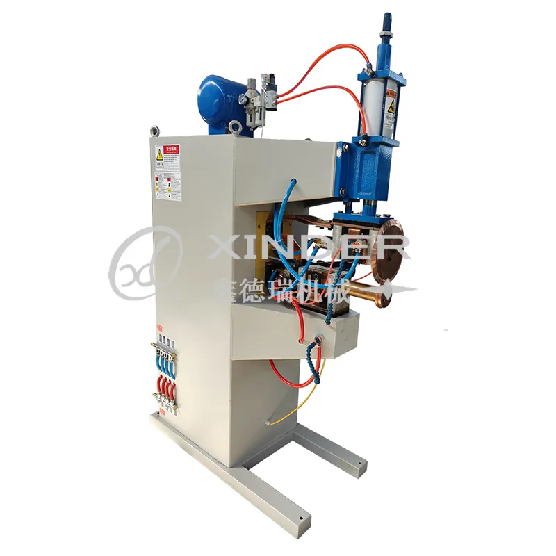 - Pressure mechanism: transmits pressure, evenly adjusts the pressure between the welding wheels, and can compensate for electrode wear;